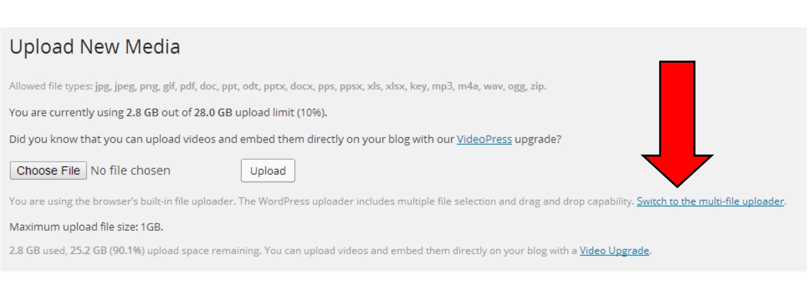- This is going to take you to the standard “Upload Image” screen; I’m presuming you already know how to upload pictures (click “Choose File(s)” –> Pick your image –> “Okay). It may try to have you upload them one at a time, which is tedious. To avoid that, choose the “multi-file uploader link on the screen)